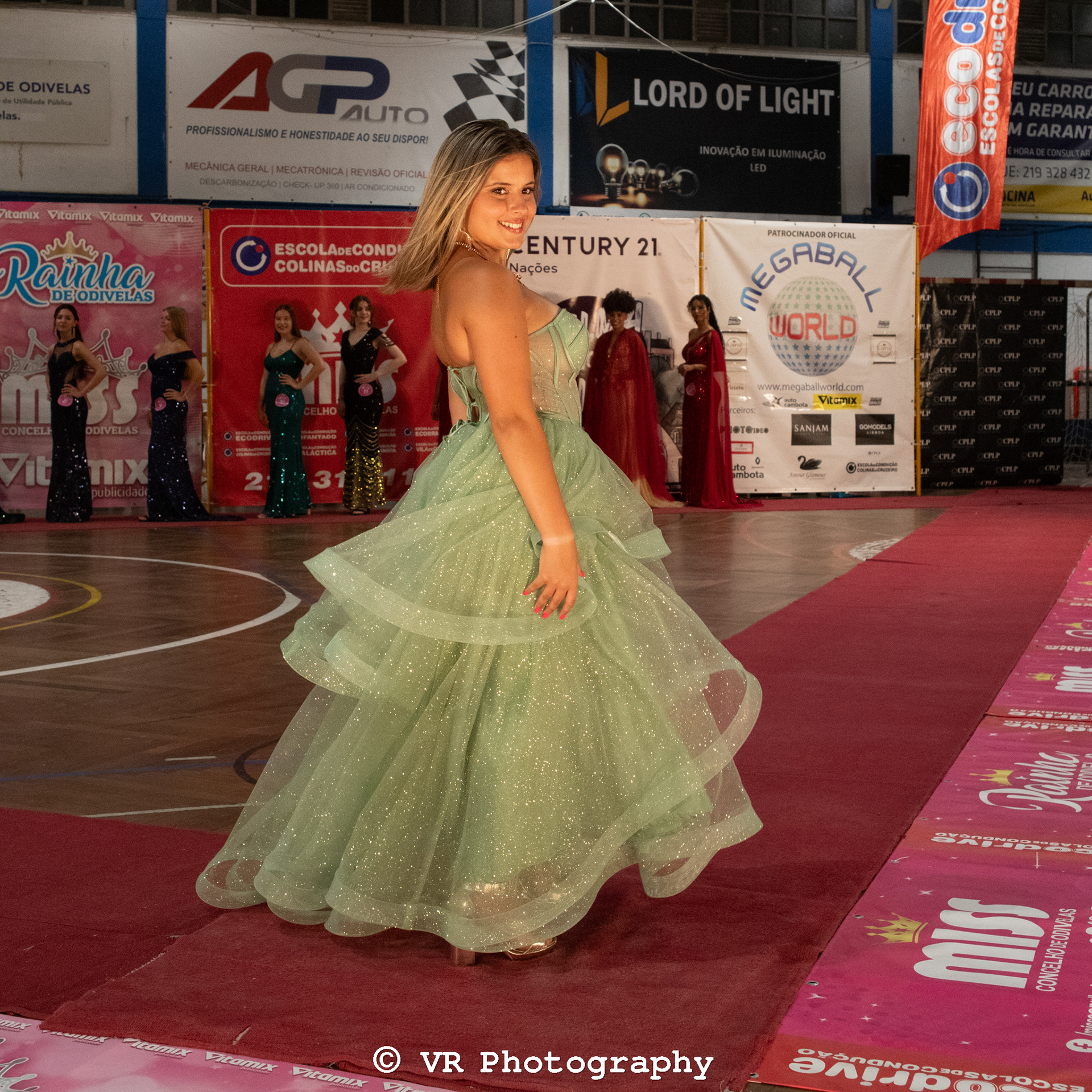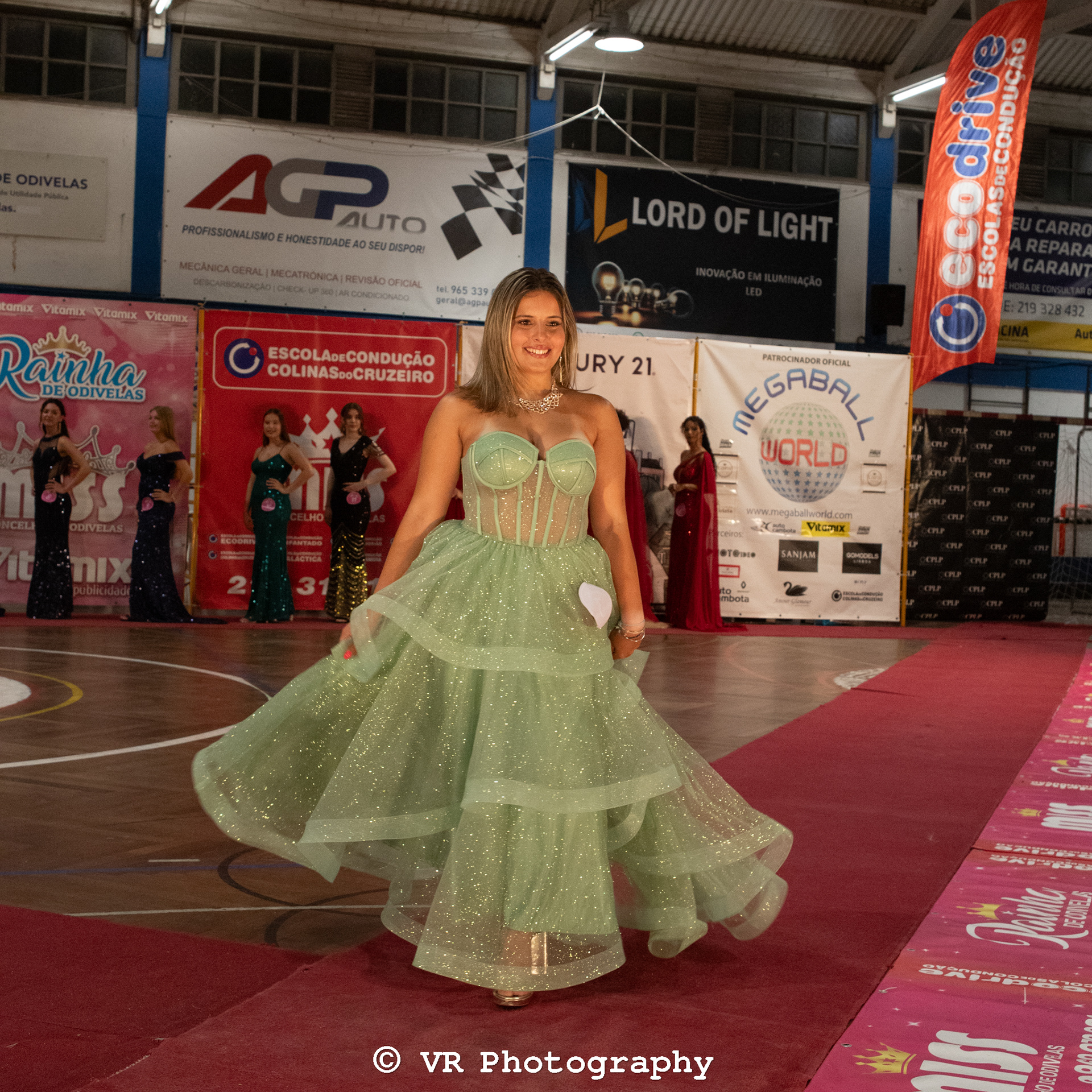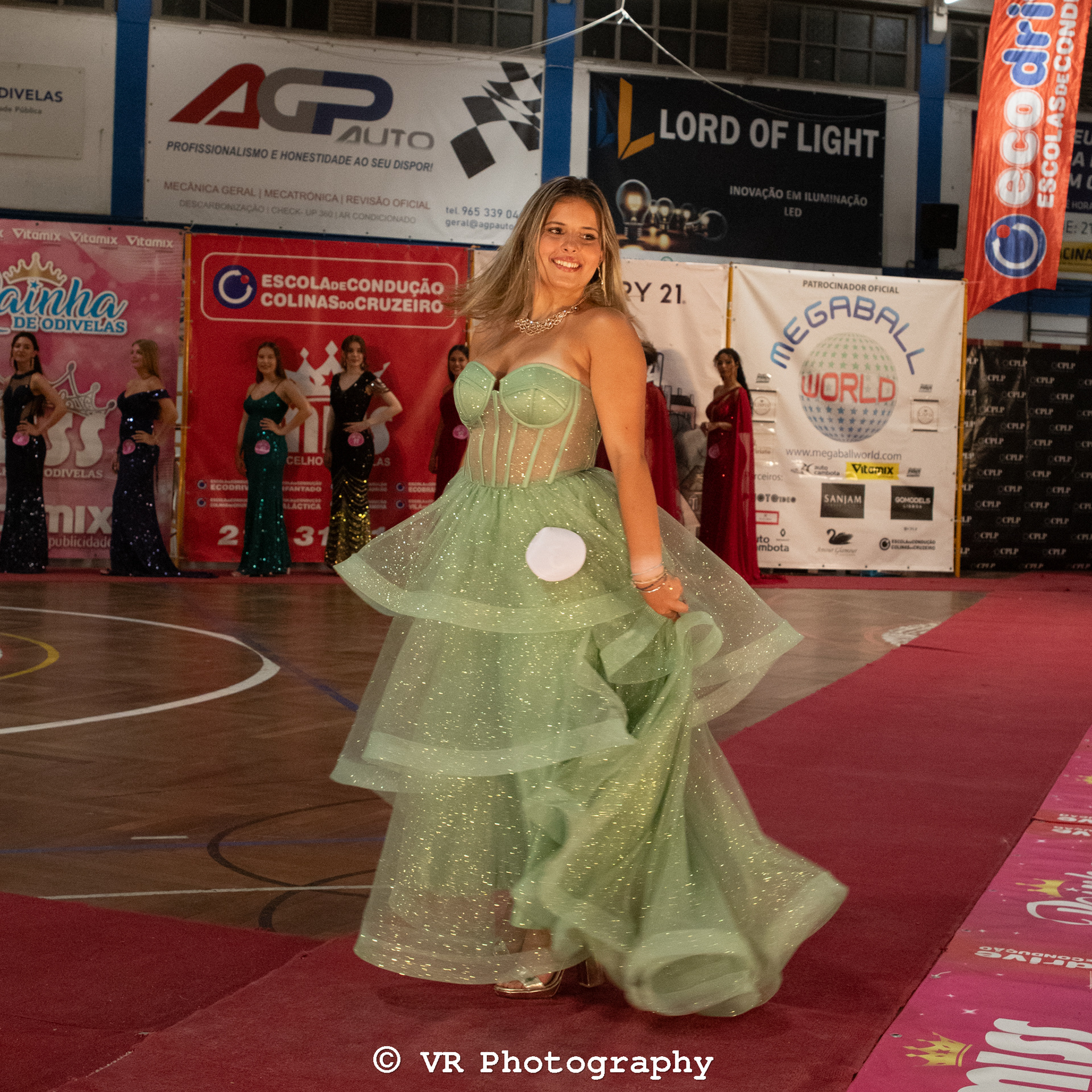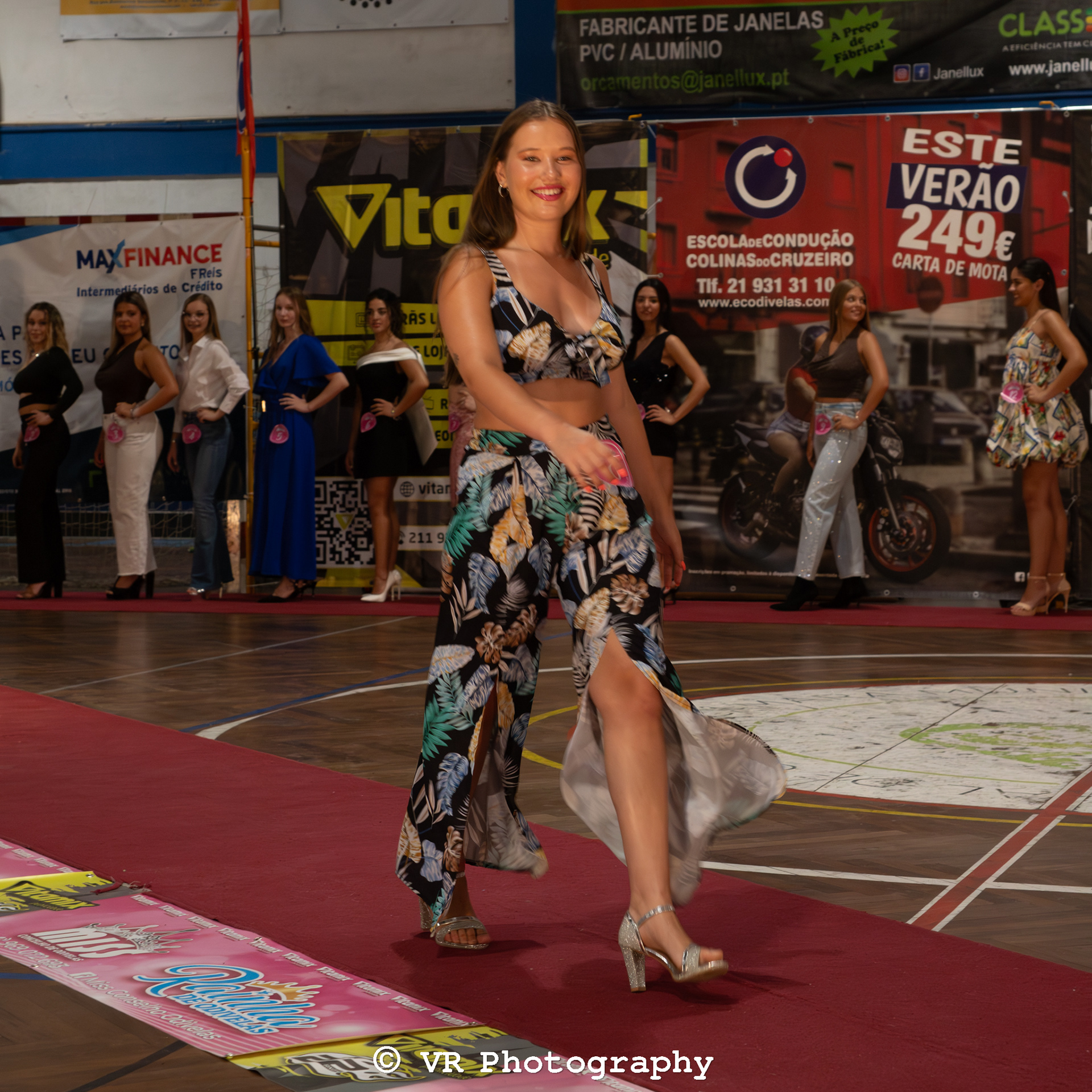 Captura de momentos exclusivos do desfile, destacando estilo, expressão e movimento das participantes, com atenção a iluminação e ambiente do evento.